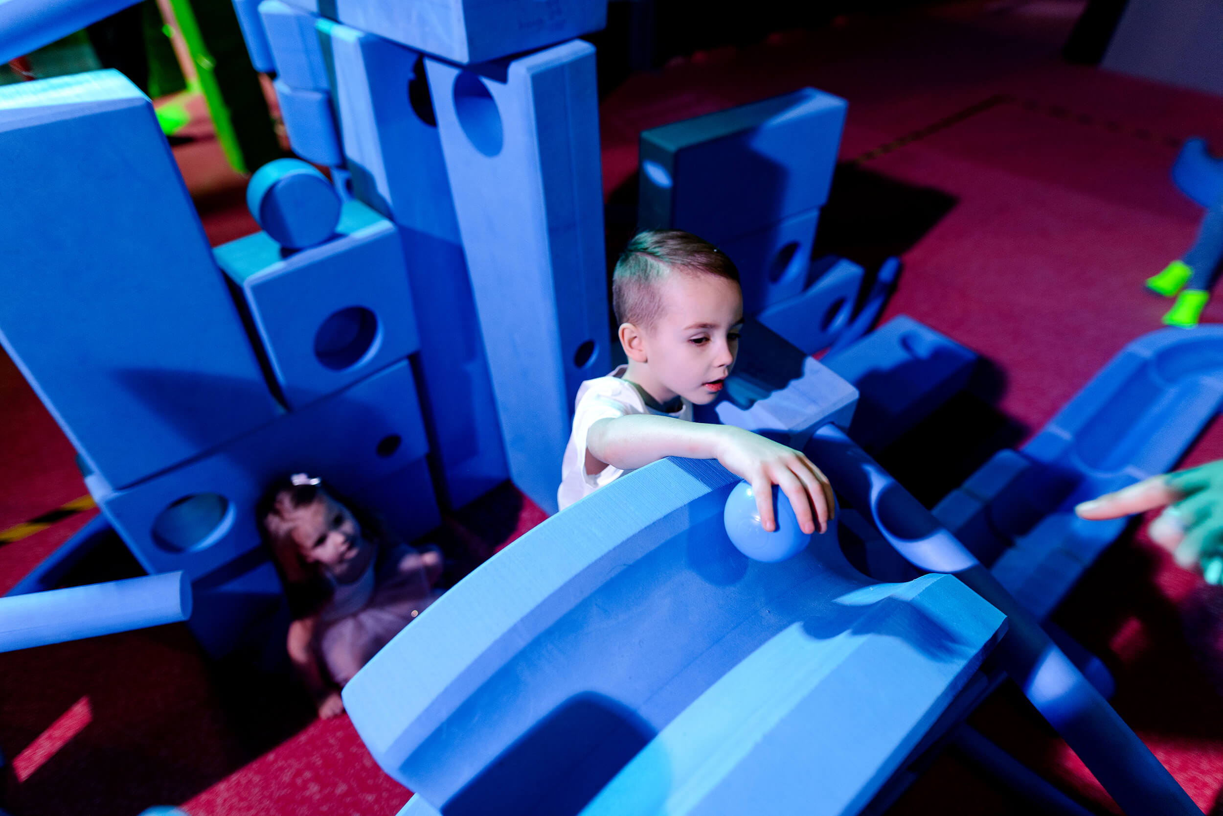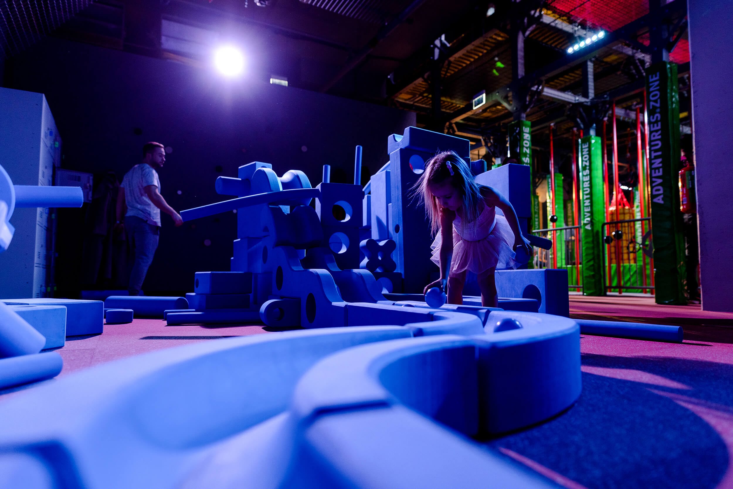 “Lielie Zilie bloki” ir jauna, bet pasaules mērogā jau atzīta, liela mēroga "rotaļa", kas iedvesmo bērnus veidot savus izgudrojumus, nodoties pašu izdomātām aktivitātēm. Rotaļu laukumu veido 15 dažādu formu bloki, kas savstarpēji savienojami visneiedomākajos veidos un kombinācijās. Atšķirībā no citām “būvēšanas” principa spēlēm, “Lielo Zilo bloku” rotaļā bērna iztēle netiek ierobežota vienas noteiktas saderības detaļu meklējumos.