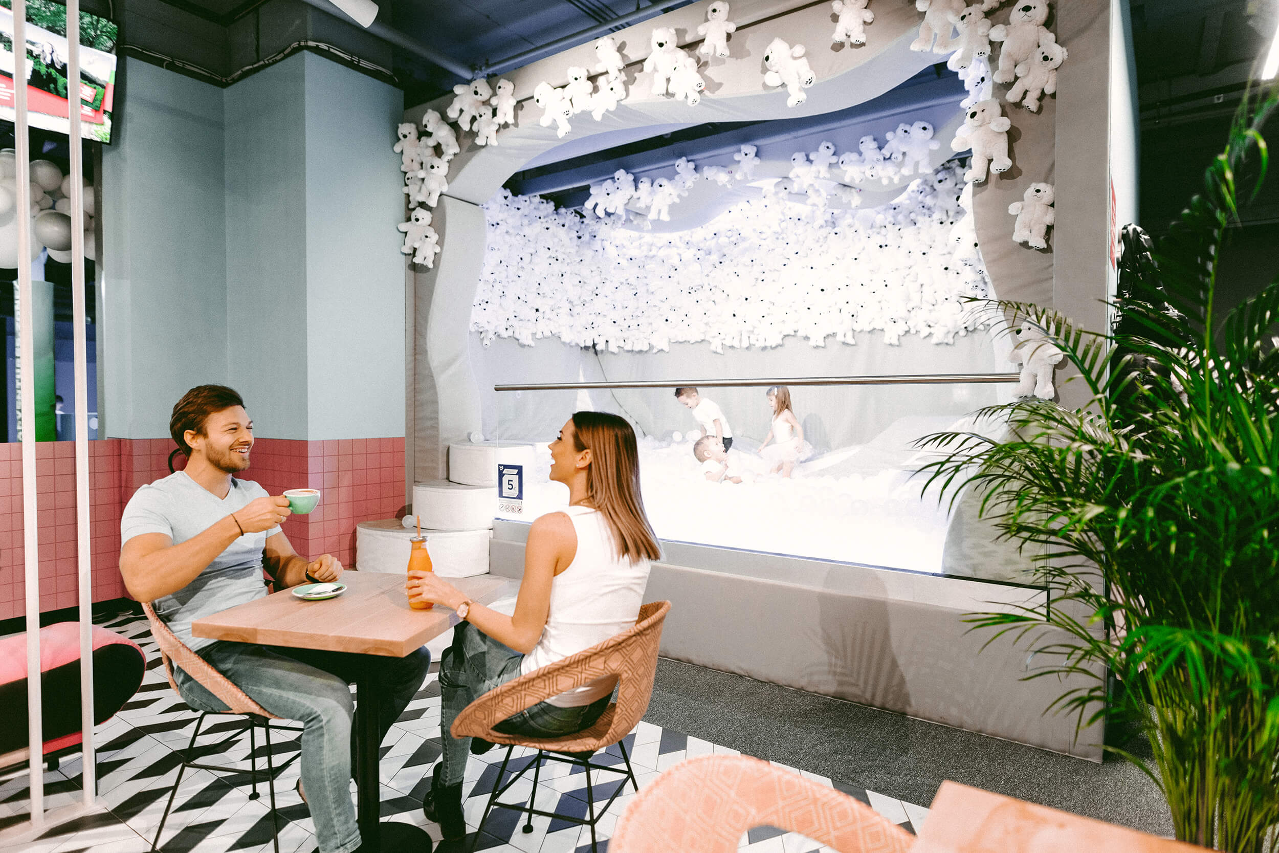 Šajā vecumā bērniem ļoti svarīgi ir atrasties vecāku tuvumā, tāpēc mūsu XS zona ir tieši līdzās kafejnīcai, kur māmiņas un tēti var komfortabli baudīt kafiju, ne mirkli nepazaudējot savu bērnu no redzesloka.